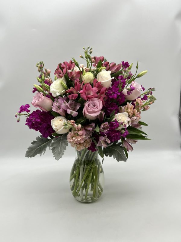 This beautiful bouquet features some gorgeous blooms that will brighten anyone’s day with wonderful shades of purple!